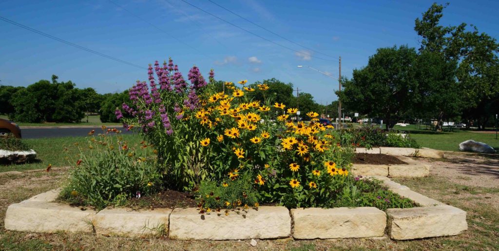 In 2010, with a grant from Texas Action for Healthy Kids, Wooten Elementary’s school nurse led a project to install three raised beds and a crushed granite walking trail, with help from local residents. In 2013, Keep Austin Beautiful donated native plants to go in the raised pollinator beds by the school.
