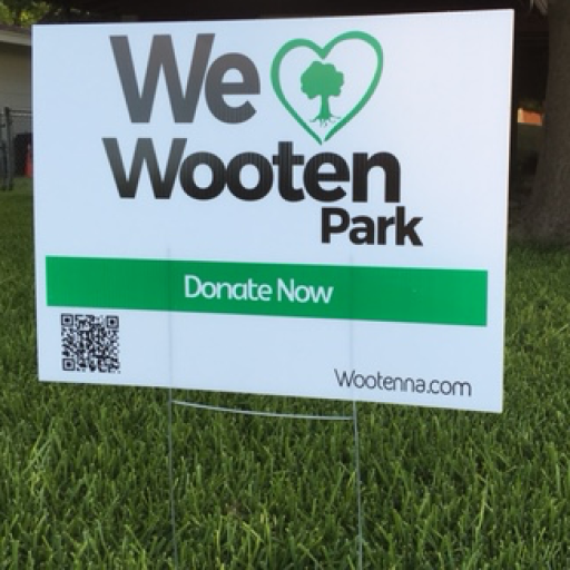 We also offer yard signs that say “We Love Wooten Park,” which were sold exclusively to help meet the grant match requirement for the pavilion.